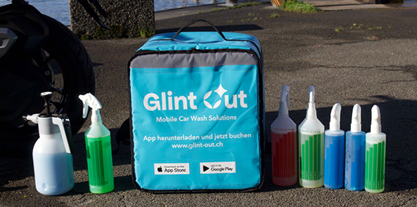 Glint Out ist das neue Öko-Startup mit Sitz in Zürich. Die erste App in der Schweiz, die sich ganz der Auto- und Motorradwäsche zu Hause widmet.